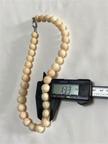 1.白い珊瑚の木をみんな見たことがあると思います。その木一本で本製品みたい珠をいくつしか取れません、こんな大粒のネックレスはかなりの素材が必要です。色近い玉を揃うのがもっと難しいことです。しかも、彫刻の技術と手間がこのネックレスの価値をプラスになります。