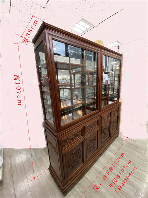 榫卯结构:由于海南黄花梨材质优良,在传统家具制作中,常采用榫卯结构来连接各个部件。这种结构不需要钉子和胶水,仅依靠木材之间的巧妙契合,就能使家具坚固耐用,同时也体现了中国传统木工技艺的精湛。就像图片中展示的柜子,可能就运用了榫卯结构,展现出独特的工艺之美。